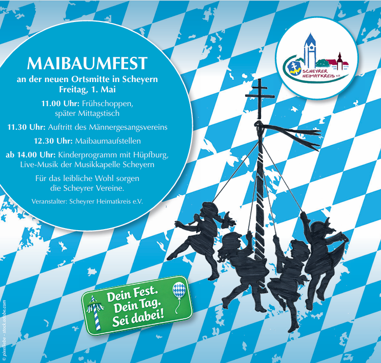Zusammen mit vielen Scheyrer Ortsvereinen veranstalten wir dabei unser Maibaumfest in der neuen Ortsmitte.